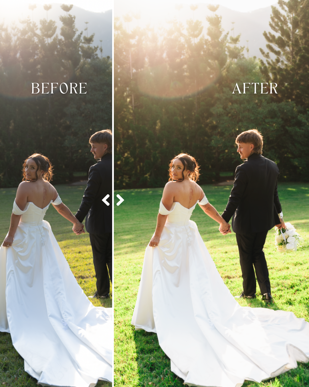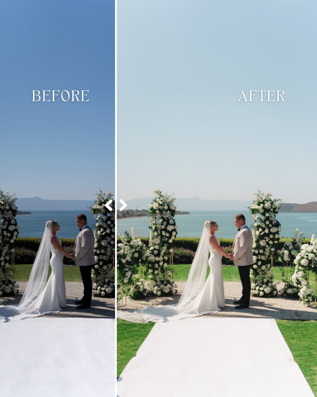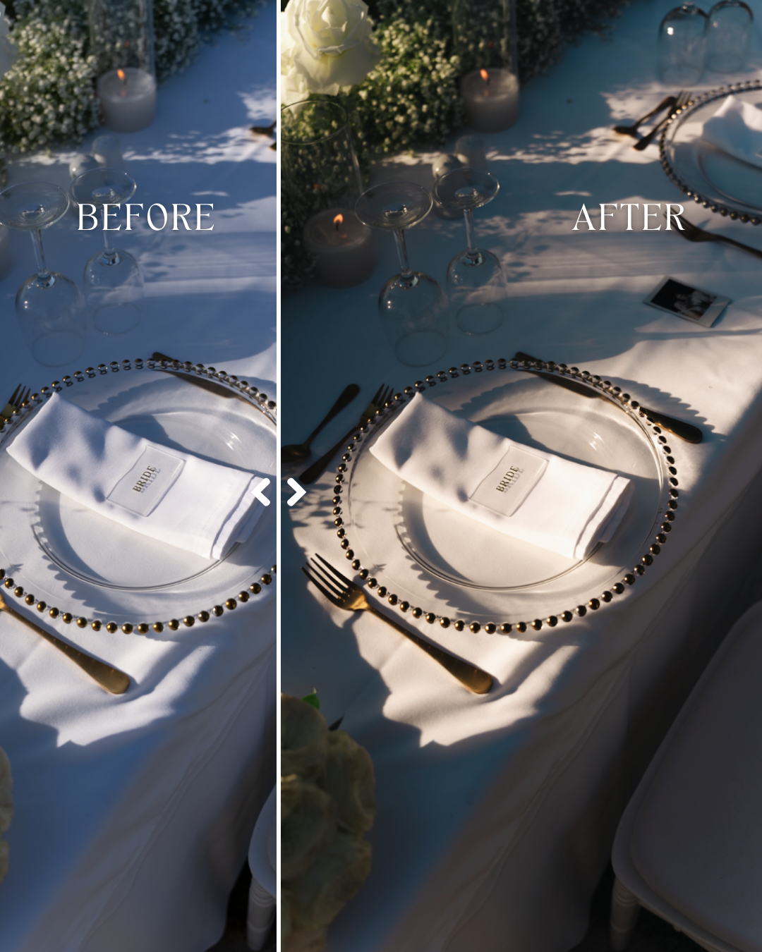- Editing that’s quick, consistent, and versatile — from golden hour portraits to indoor receptions and flash moments